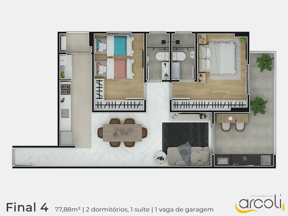 O Residencial Arcoli 4 foi pensado para trazer conforto, lazer e segurança para a toda família, empreendimento inovador, com área de lazer completa e moderna.